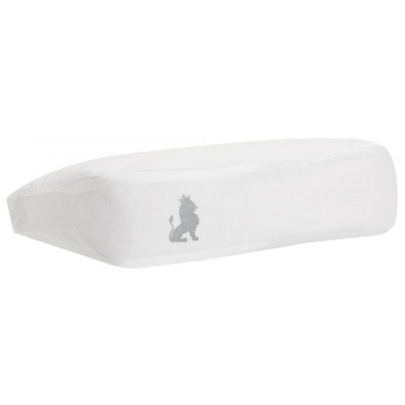 Taie en coton 100% BIO ornée du petit lion argent, elle est adaptée à la forme de l'oreiller.